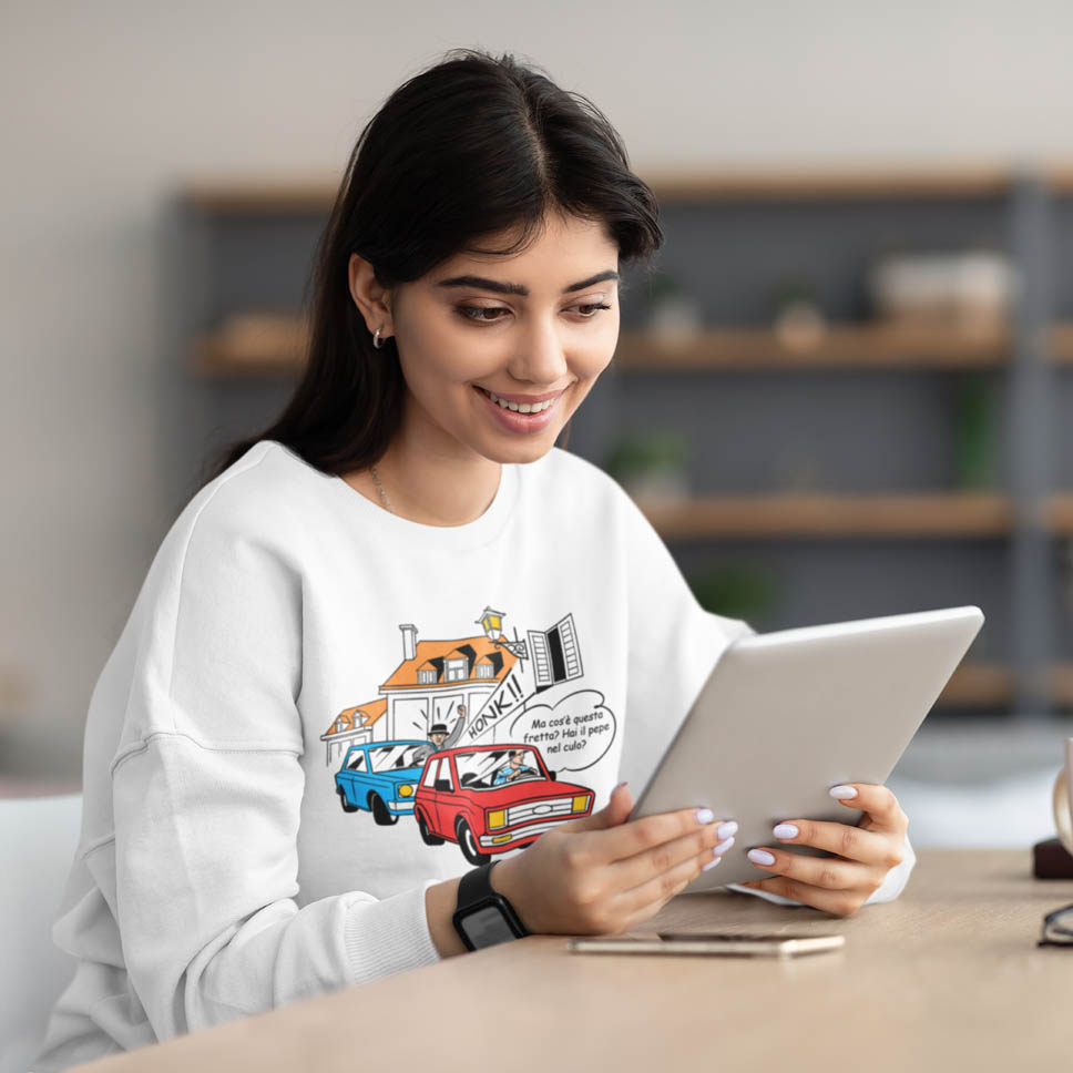 Bring humor and comfort together with the Castellesi Pepe Nel Culo 100% Cotton Blend Unisex Sweatshirt! Featuring a fun cartoon illustration of the popular Italian saying “Pepe Nel Culo” (literally “pepper in the butt,” often used to describe someone who’s full of energy or a little too restless), this sweatshirt is designed to keep you warm, stylish, and laughing. Whether you’re a fan of Italian humor or just love a unique and playful fashion piece, this sweatshirt is a must-have!